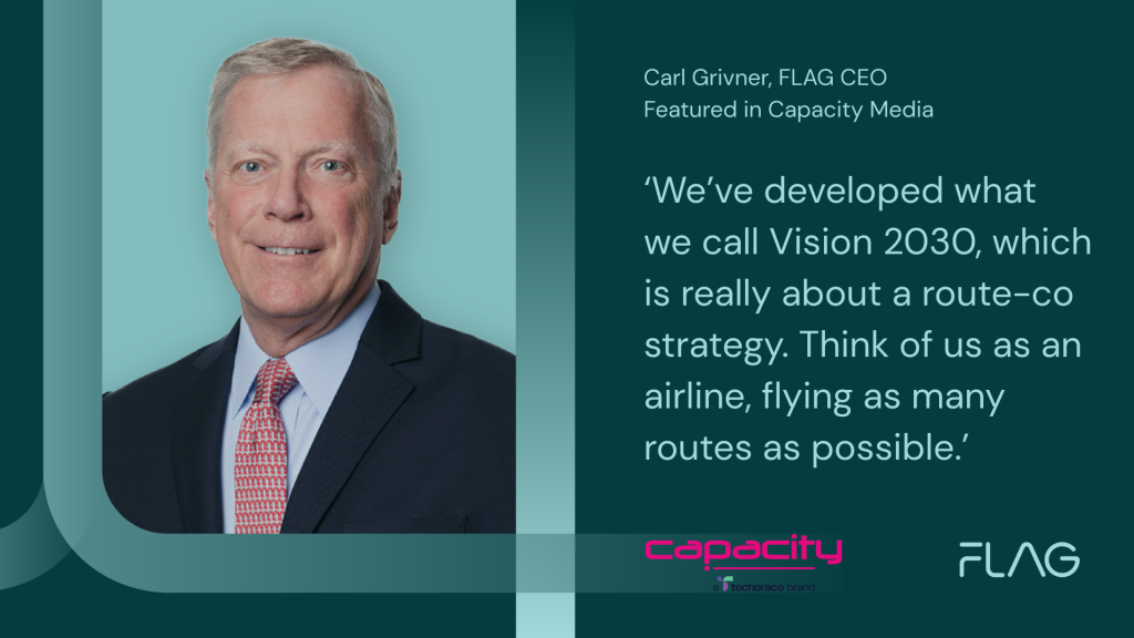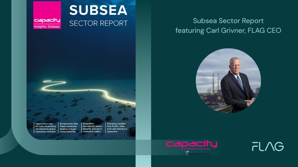 FLAG CEO Carl Grivner joined subsea leaders Ana Nakashidze (AzerTelecom), Maxie Reynolds (Subsea Cloud), and Giuseppe Valentino (Sparkle) to bring together insights for Capacity – a techoraco brand’s first State of the Sector report on the subsea industry. The report explores how the sector is evolving under unprecedented demand, driven by hyperscalers, rapid digitalisation and […]